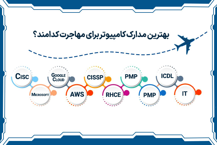 بهترین مدرک کامپیوتر برای مهاجرت می تواند از میان رشته هایی مانند Cisco، Microsoft، RHCE، ICDL، IT و… انتخاب شوند که پس از یادگیری آنها و کسب تخصص کافی، امکان مهاجرت برای شما فراهم می گردد. بهترین مقصد برای مهاجرت متخصصان کامپیوتر، کشورهای آلمان، آمریکا، کانادا و هلند هستند که به شدت به نیروی کار متخصص نیاز داشته و راه را برای افراد متقاضی هموار میکنند. برای یادگیری این مهارت ها و دریافت مدارک معتبر بجز دانشگاه می توانید در شعبه های مختلف آموزشگاه فنیوحرفهای در مشهد، تهران و... مانند رادمان ثبت نام و در دوره های آنها شرکت کنید.